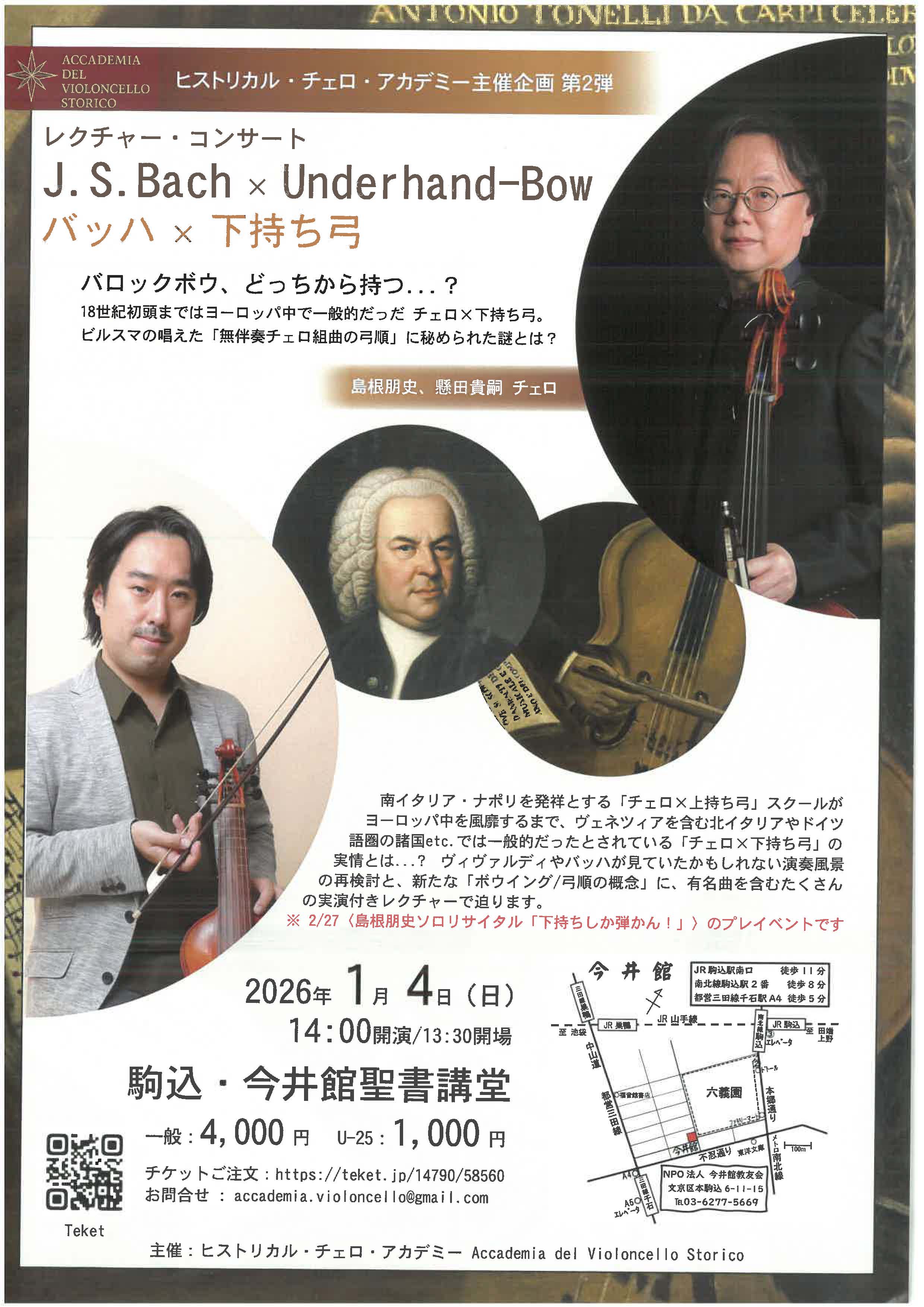 2026年1月4日(日)14:00(開演)レクチャー・コンサート J.S.Bach × Underhand-Bow