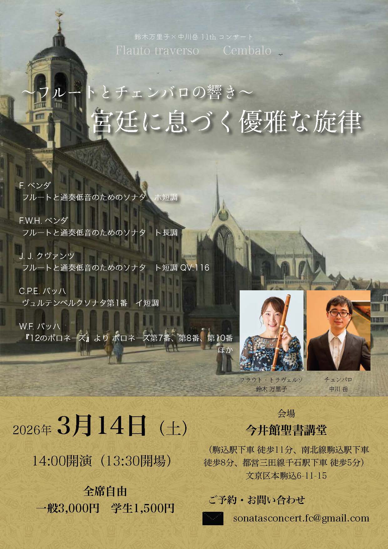 2026年3月14日(日)14:00(開演)フルートとチェンバロの響き 宮廷に息づく優雅な旋律